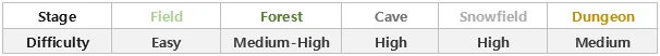 Explore a variety of environments including Plains, Forest, Cave, Snowfield, and Dungeon.